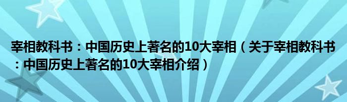 关于宰相教科书:中国历史上著名的10大宰相到此分享完毕,希望能帮助到您。